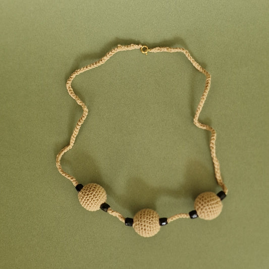 Tamborēta gaiši brūna lina kaklarota (ALMA 120)