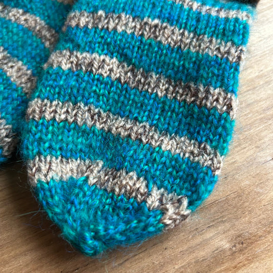 Zilganzaļas ar brūnu strīpainas vilnas zeķes bērniem 22.-24.izm. (VEZI 53)