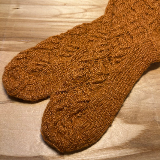 Brūnas krāsas mežģīņu adījuma siltās zeķes 39.-41. izm. (SITĒ 33)