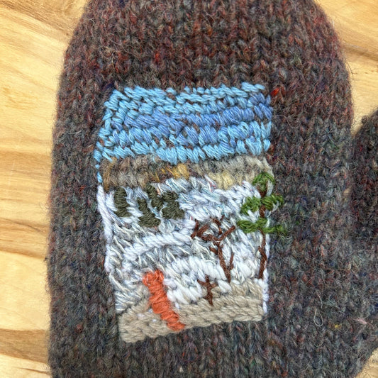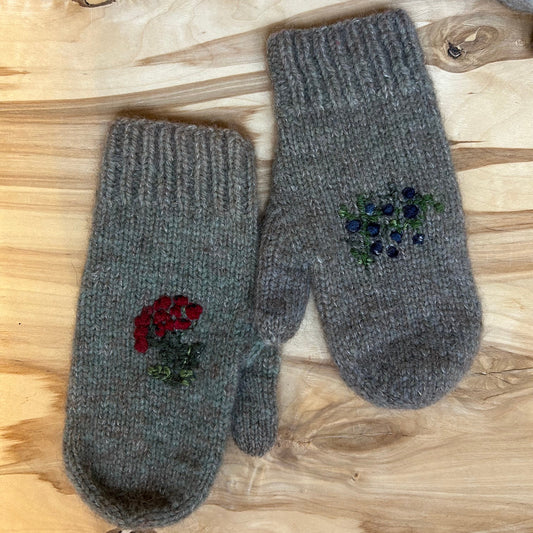 Brūni violeti adīti dūraiņi ar izšūtu zīmējumu (RUTO 6)