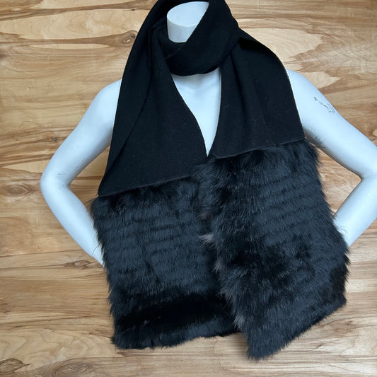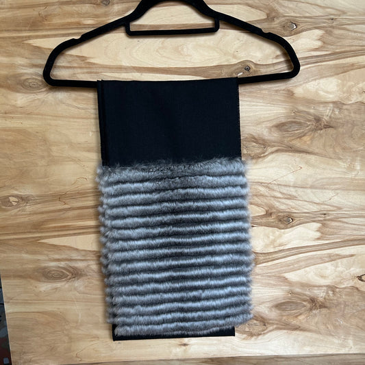 Melna vilnas šalle ar pelēku truša vilnas dekoratīvu malu (JĀNA 46)