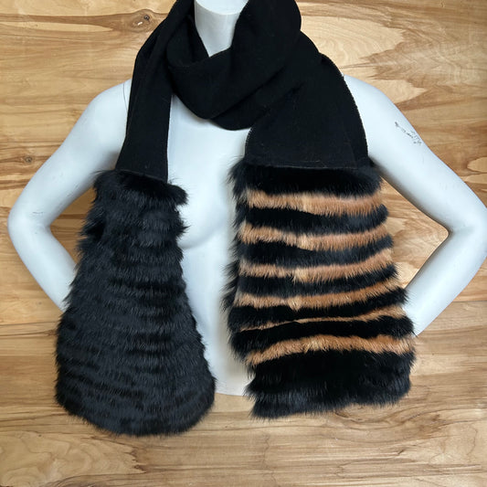 Melna vilnas šalle ar melnu un brūnu truša vilnas dekoratīvu malu (JĀNA 48)