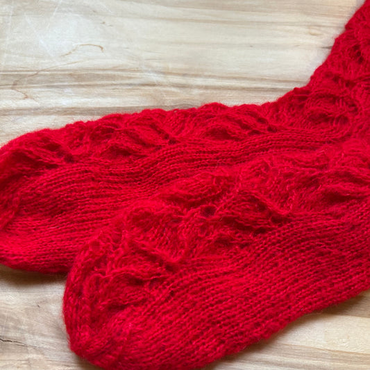 Sarkanas mežģīņu raksta vilnas zeķes 40.-42.izm. (VALU 13)