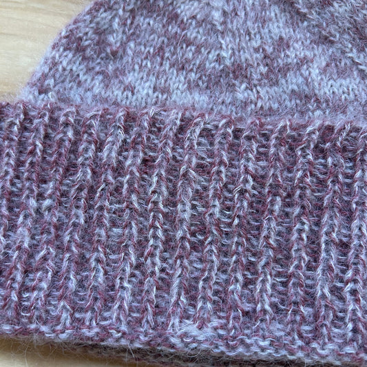 Adīta cepure ar atloku veci rozā krāsā (RUTO 13)