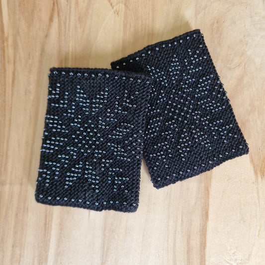 Melni merīnvilnas mauči/pulsa sildītāji ar pelēku pērlīšu zalkša zīmēm (ANLA 42)