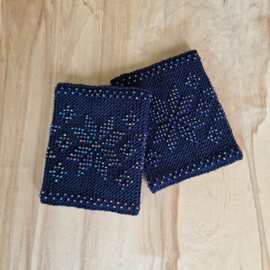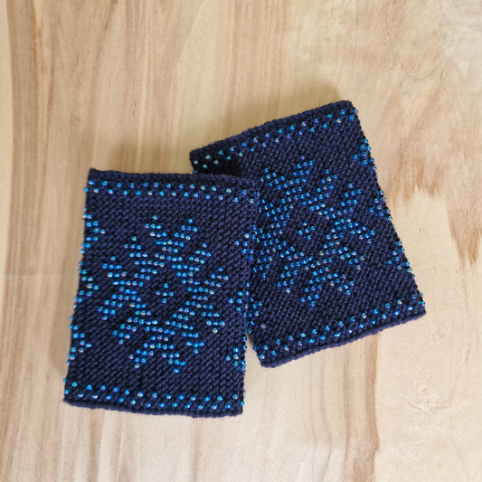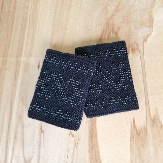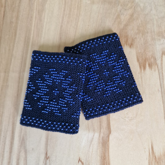 Tumši zili merīnvilnas mauči/pulsa sildītāji ar tumši zilu pērlīšu akas zīmēm (ANLA 41)