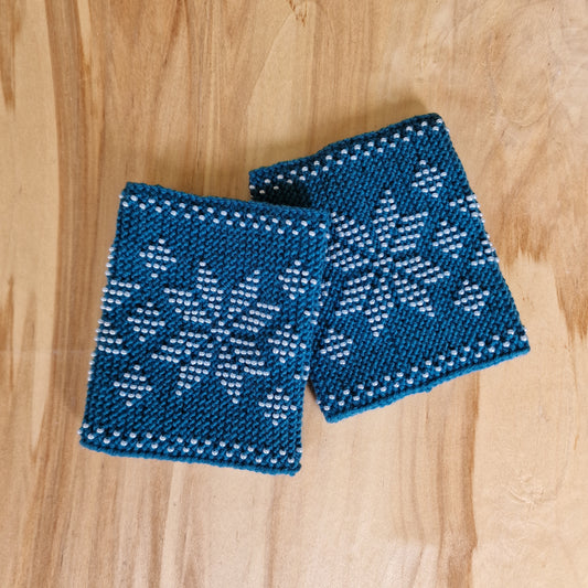 Tumši zili merīnvilnas mauči/pulsa sildītāji ar gaiši zilu pērlīšu akas zīmēm (ANLA 35)