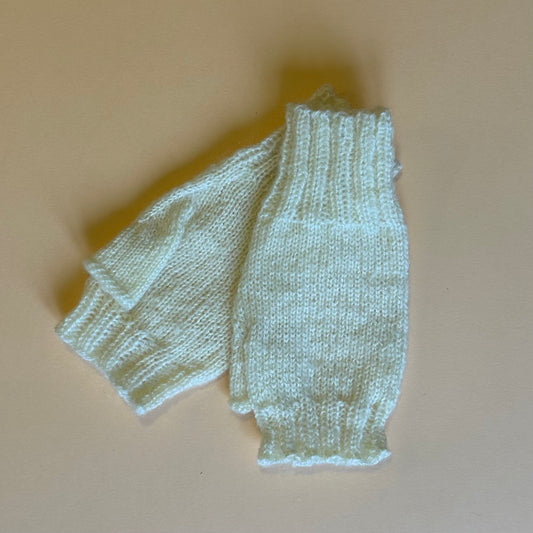 Rokām adīti balti pirkstaiņi ar skujiņas rakstu plaukstas virspusē (INVA 48)