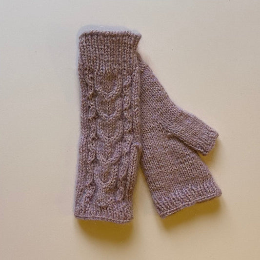 Rokām adīti gaiši pelēki pirkstaiņi ar skujiņas rakstu plaukstas virspusē (INVA 41)