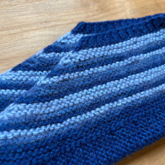 Adītas vilnas čībiņas 36.-38.izm. zilā krāsā ar zilām strīpiņām (DAKU 29)