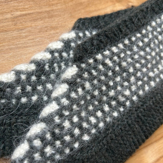 Adītas vilnas čībiņas 36.-38.izm. tumši pelēkzaļas ar baltu rakstiņu (DAKU 30)