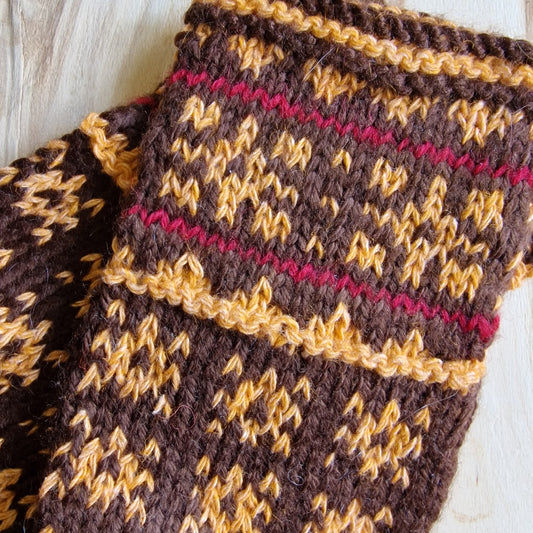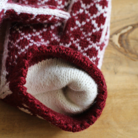 Tumši sarkani merino vilnas dūraiņi ar baltiem ornamentiem (RABE 87)