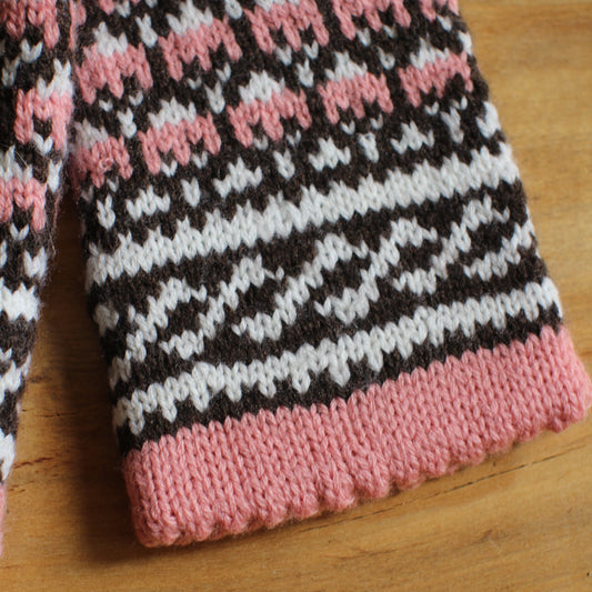 Rozā merino vilnas dūraiņi ar baltiem un brūniem ornamentiem (RABE 83)