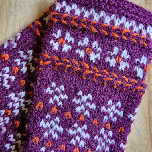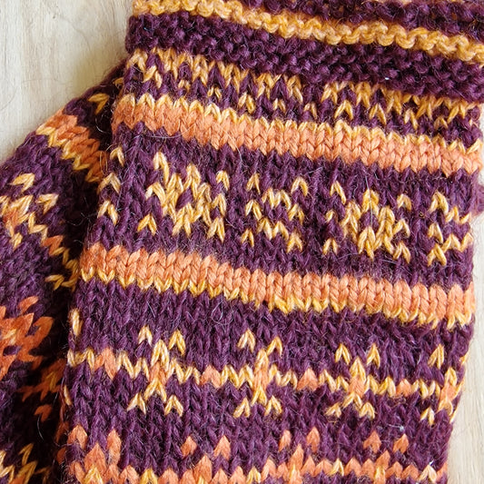 Tumši violeti/bordo dūraiņi ar oranžiem rakstiem (VALU 22)