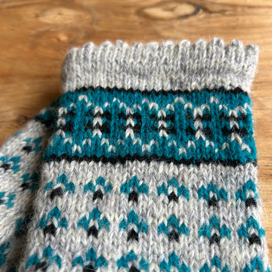 Pelēki sieviešu dūraiņi ar zilganzaļiem un melniem ornamentiem (MAFE 6)