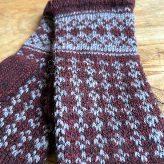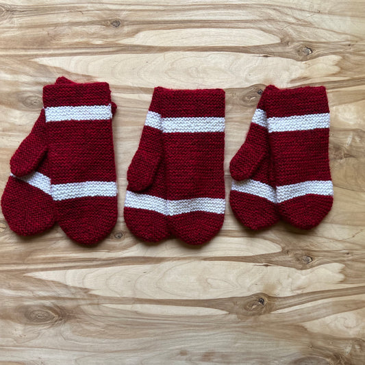 Tumši sarkani adīti dūraiņi ar baltām līnijām (VEPA 140)