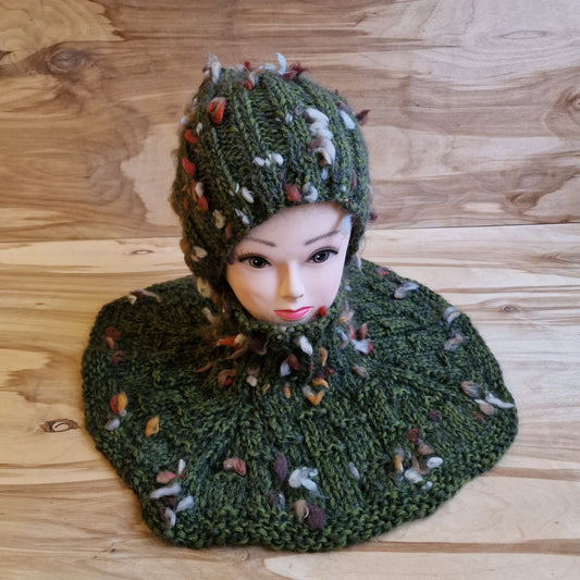 Komplekts - cepure un kakliņšalle sūnu zaļā krāsā (DZTO 73)