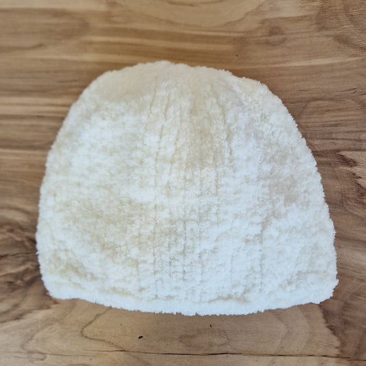 Rokām adīta mīksta krēmbalta cepure (INKU 20)