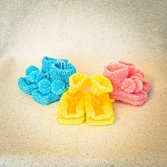 Gaiši rozā adīti zīdaiņu zābaciņi pēda 8 cm