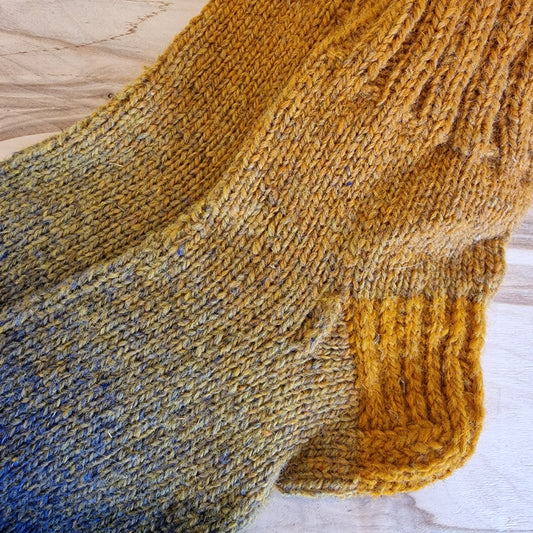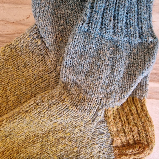 Gaiši zilganzaļas un dzeltenbrūnas vilnas zeķes 42.-44.izm. (IVZA 30)