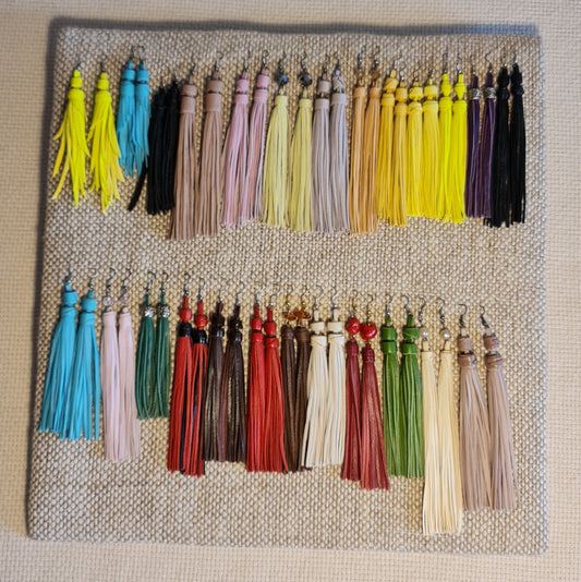 Viegli ādas skariņveida auskari mēļā krāsā (JEŠĶ 10)