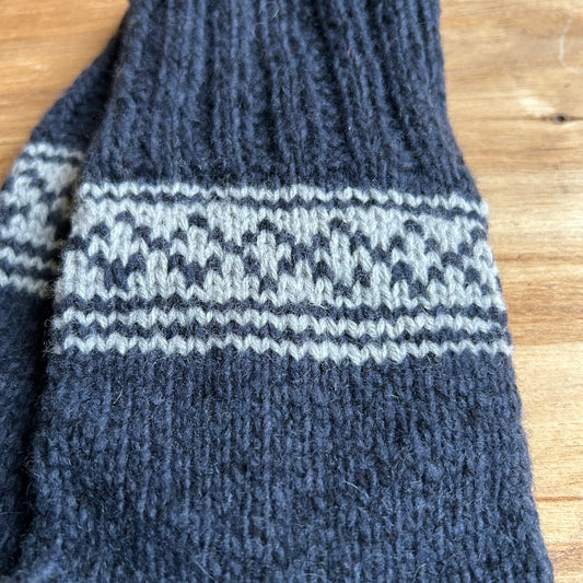 Siltās zeķes 43.-45.izm. tumši zilā krāsā ar gaišiem ornamentiem (MAFE 25)