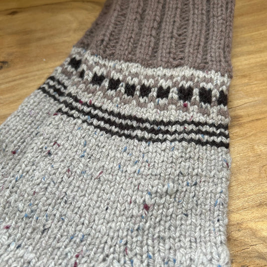 Siltās zeķes 40.-42.izm. gaiši brūnā krāsā ar tumši brūniem ornamentiem stulmu (MAFE 14)