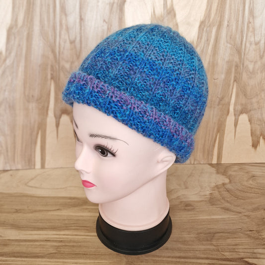 Rokām adīta unisex cepure zilivioletos toņos (MAŅI 11)