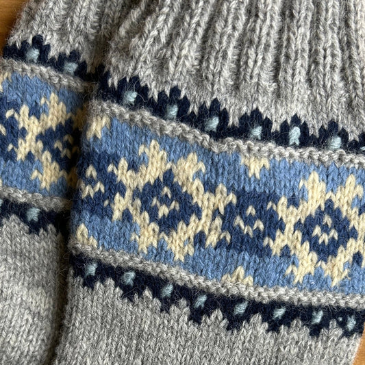 Siltās zeķes 43.-45.izm. pelēkas zeķes ar ornamentiem (MALI 48)