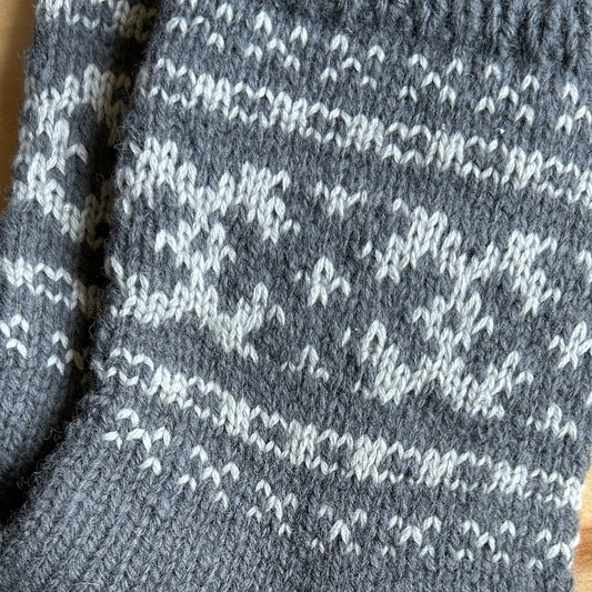 Siltās zeķes 41.-43.izm. pelēkā krāsā ar baltu ornamentu (MALI 40)
