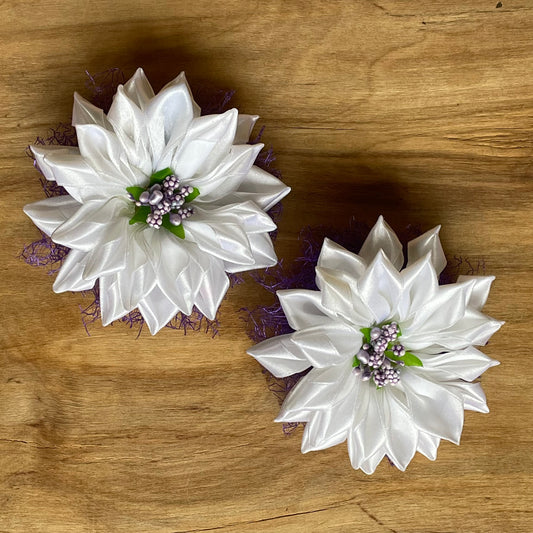 Pērļu balta matu gumija zieda formā (IRFI 39)