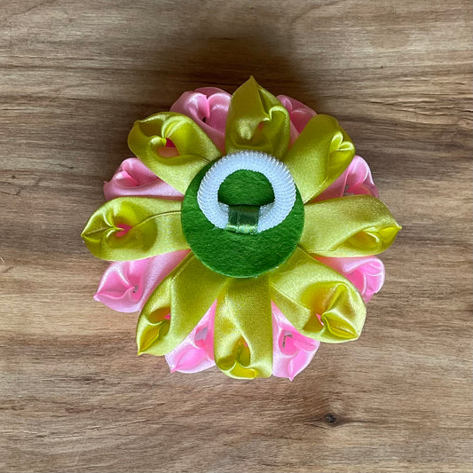 Maigi rozā matu gumija zieda formā (IRFI 34)