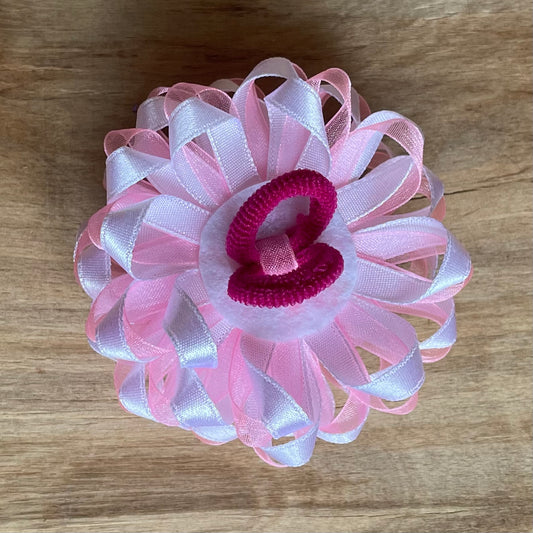 Maigi rozā un balta matu gumija zieda formā (IRFI 42)