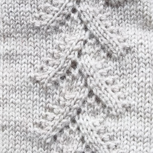 Rokām adīti gaiši, gaiši pelēkbrūni pirkstaiņi ar skujiņas rakstu plaukstas virspusē (INVA 34)