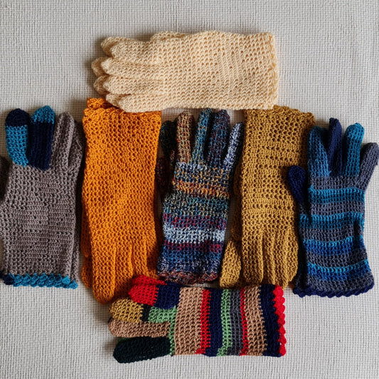 Rokām adīti melni pirkstaiņi ar kāsīšu rakstu plaukstas virspusē (INVA 31)