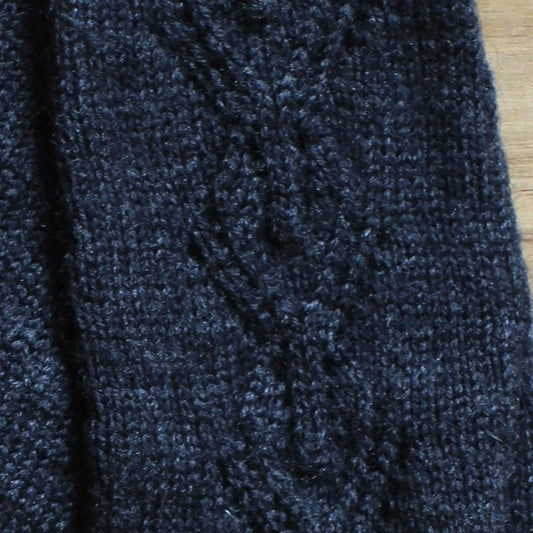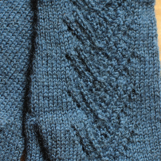 Rokām adīti zili pirkstaiņi ar mežģīņu rombiņu rakstu plaukstas virspusē (INVA 40)