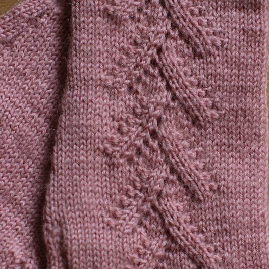 Rokām adīti vecrozā pirkstaiņi ar mežģīņu skujiņas rakstu plaukstas virspusē (INVA 37)