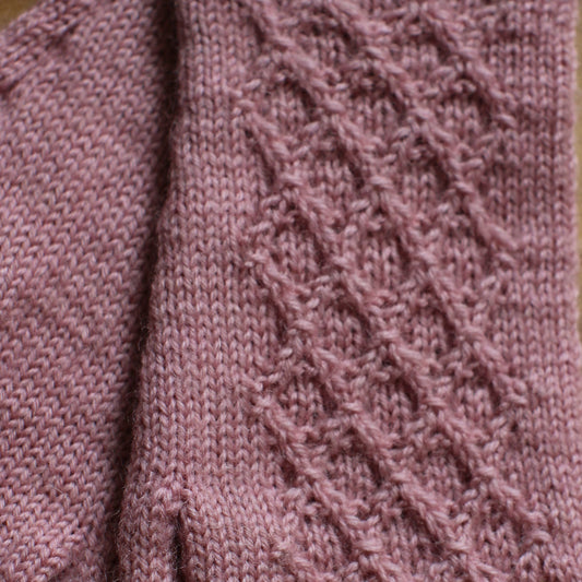 Rokām adīti vecrozā pirkstaiņi ar mežģīņu rombiņu rakstu plaukstas virspusē (INVA 38)