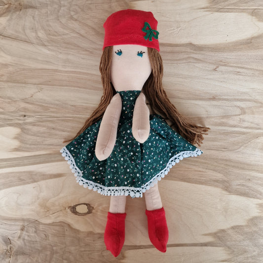 Ar rokām šūta kokvilnas lelle ar sarkanu cepuri (IRVI 1)