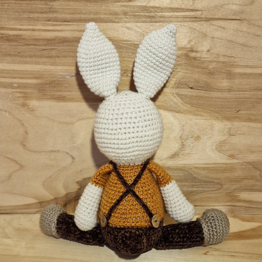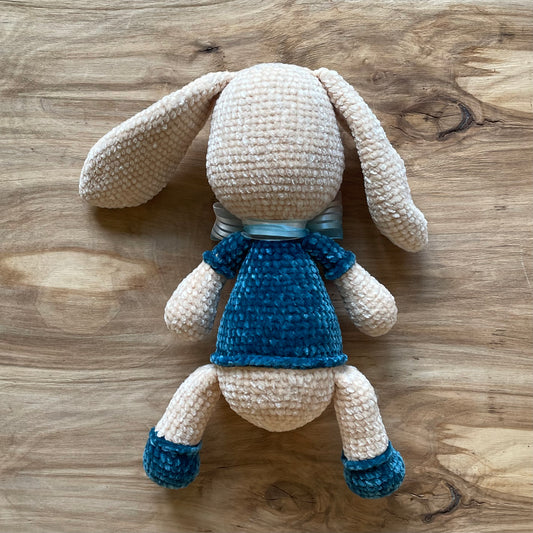 Tamborēta rotaļlieta - liels zaķis ar zilu krekliņu (AIPU 49)