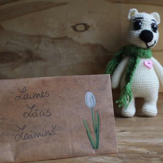 Tamborēta rotaļlieta bērniem/pieaugušajiem Laimes lācis (INBA 12)