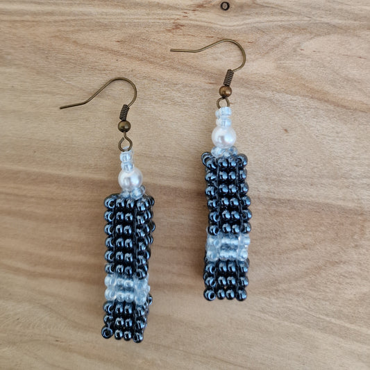 Pelēkbalti telpiski / gareni sīkpērlīšu auskari (DAMI 31)