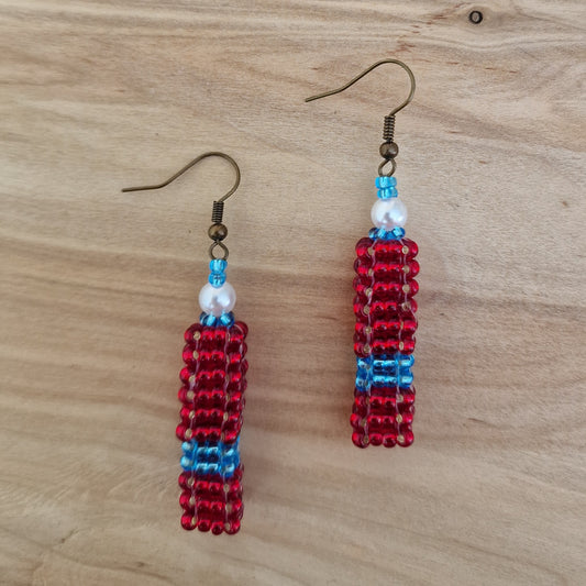 Sarkanzili telpiski / gareni sīkpērlīšu auskari (DAMI 32)