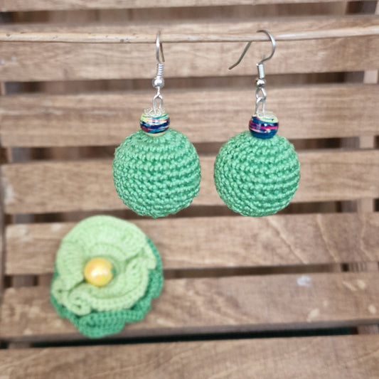 Zaļi tamborēti auskari - bumbas kr.p. (ALMA 97)