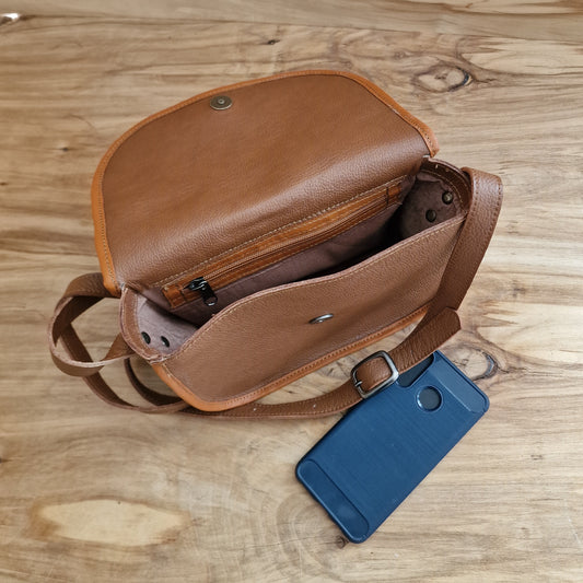 Brūna trapeces formas dabīgās ādas soma (RARA 224)