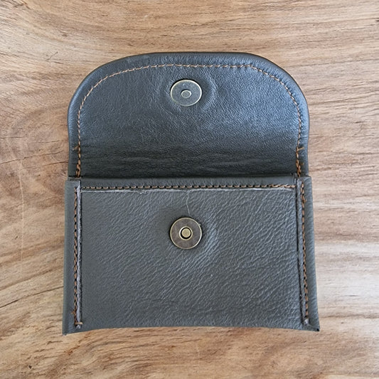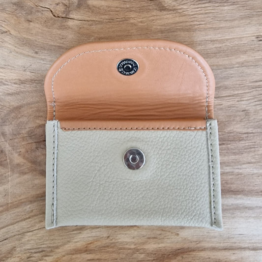Neliels dabīgās ādas karšu/naudas maciņš ar 2 nodalījumiem / zaļpelēkā krāsā (RARA 220)