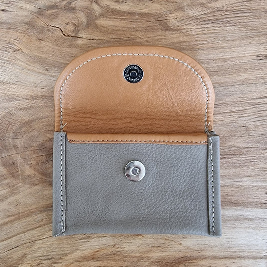 Neliels dabīgās ādas karšu/naudas maciņš ar 2 nodalījumiem / gaiši pelēkā krāsā (RARA 217)