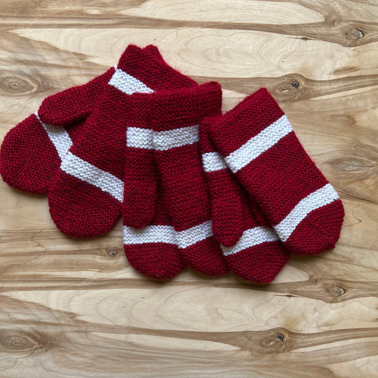 Tumši sarkani adīti dūraiņi ar baltām līnijām (VEPA 143)