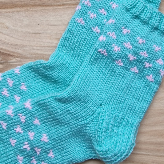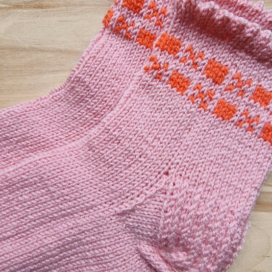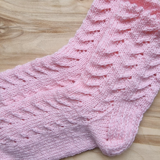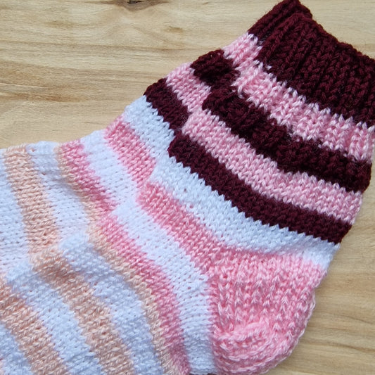 Rozā/baltas vilnas zeķes bērniem/zīdaiņiem 6.-12.mēn. (VEZI 1)
