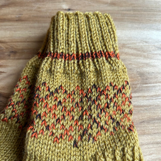Siltās zeķes vīriešiem sinepju dzeltenas ar brūniem rakstiņiem 43.-45.izm. (VEZI 37)